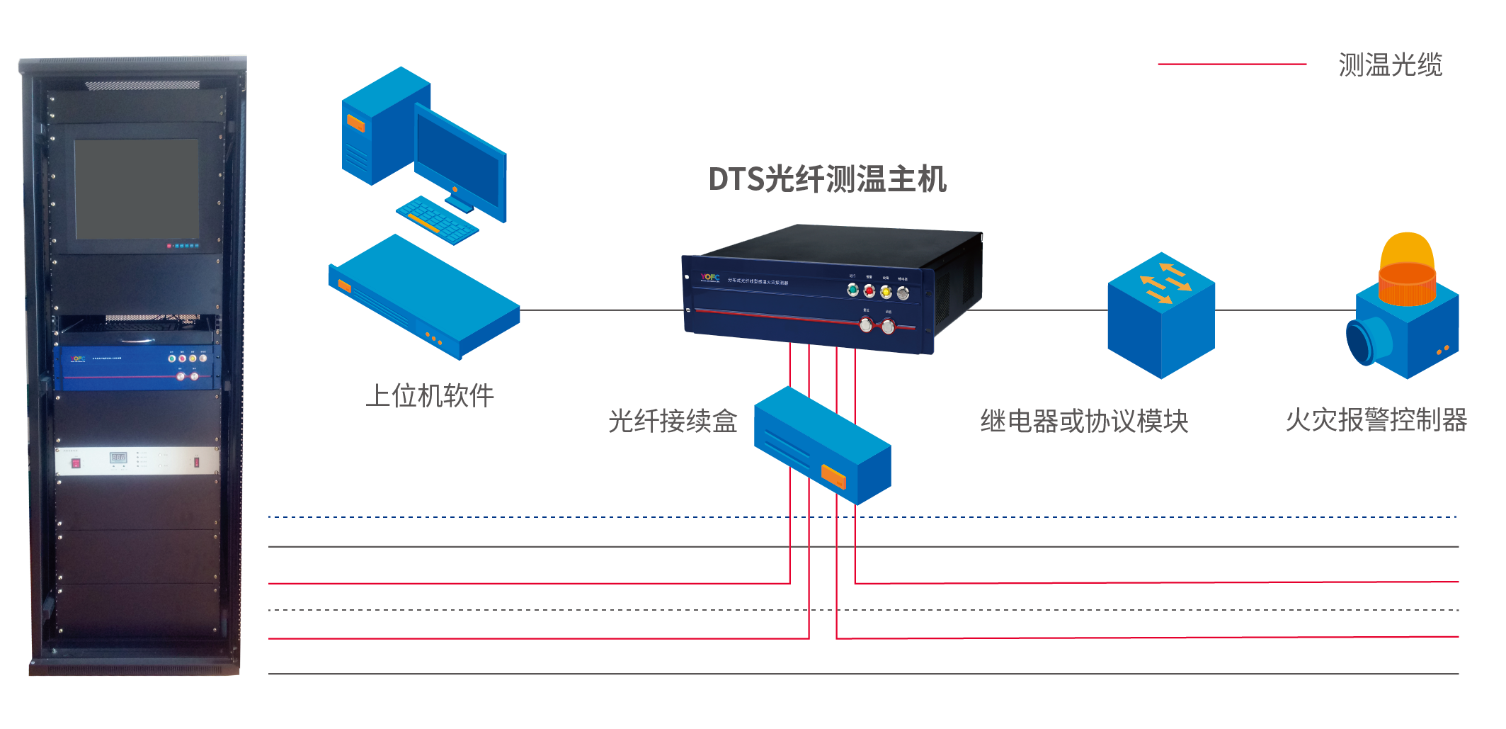• 報(bào)警功能:定溫報(bào)警、區(qū)域溫差報(bào)警、溫升過快報(bào)警、斷纖報(bào)警、裝置異常等報(bào)警