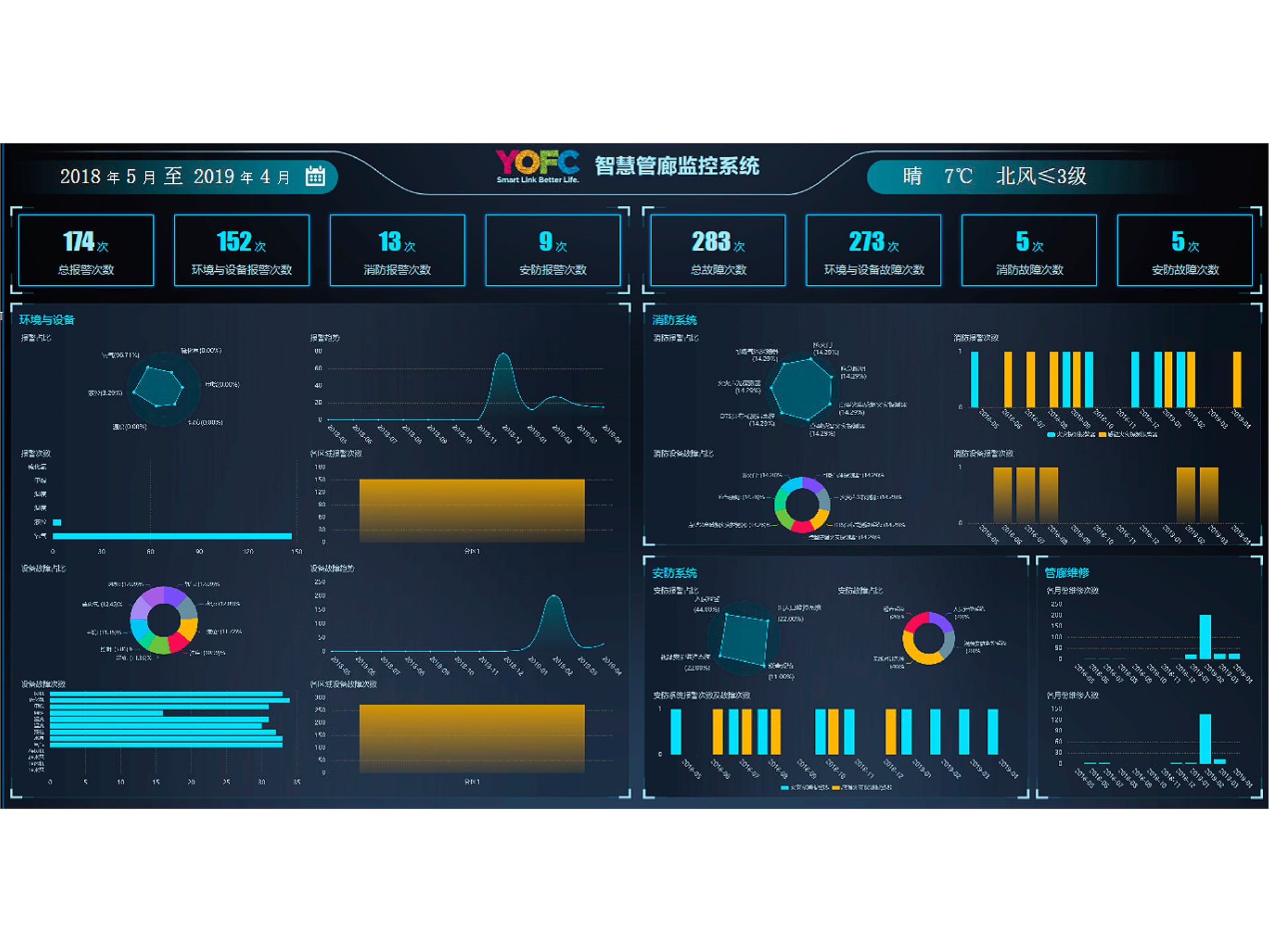 長飛ACU 管理系統(tǒng)采用雷達(dá)圖、條形圖、趨勢圖、餅圖、柱狀圖等形式,從多個(gè)維度對接入ACU、傳感器及