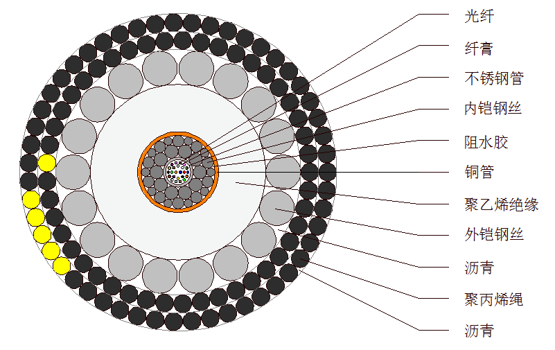 該光纜適用于在敷設、埋設、回收、運行時具有單層鎧裝防護的淺海中特定區(qū)域 |