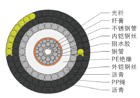 帶有單層鎧裝防護(hù)的輕型光纜,該光纜適用于在敷設(shè)、回收、運(yùn)行時(shí)要求提升一定抗拉性能的特定區(qū)域