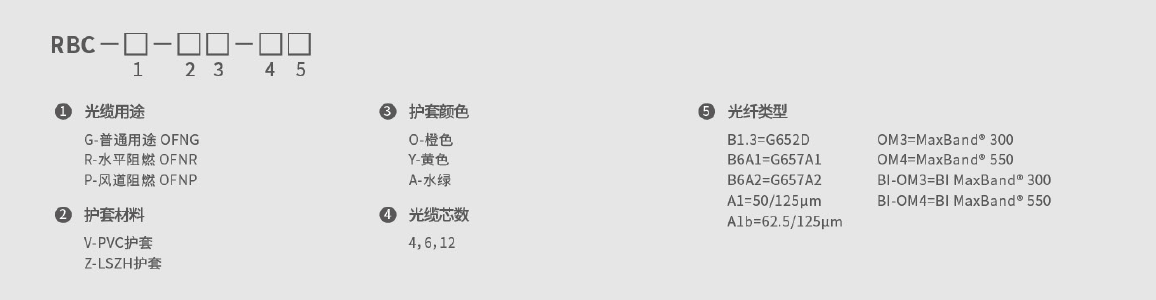 RBC 光纖帶扁平光纜使用光纖帶作為光傳輸介質,外覆一層芳綸作為受力加強單元,最外擠制一層聚氯乙烯(PVC)或低煙無鹵材料(LSZH,低煙、無鹵、阻燃)護套而成,最大芯數可至 24 芯。